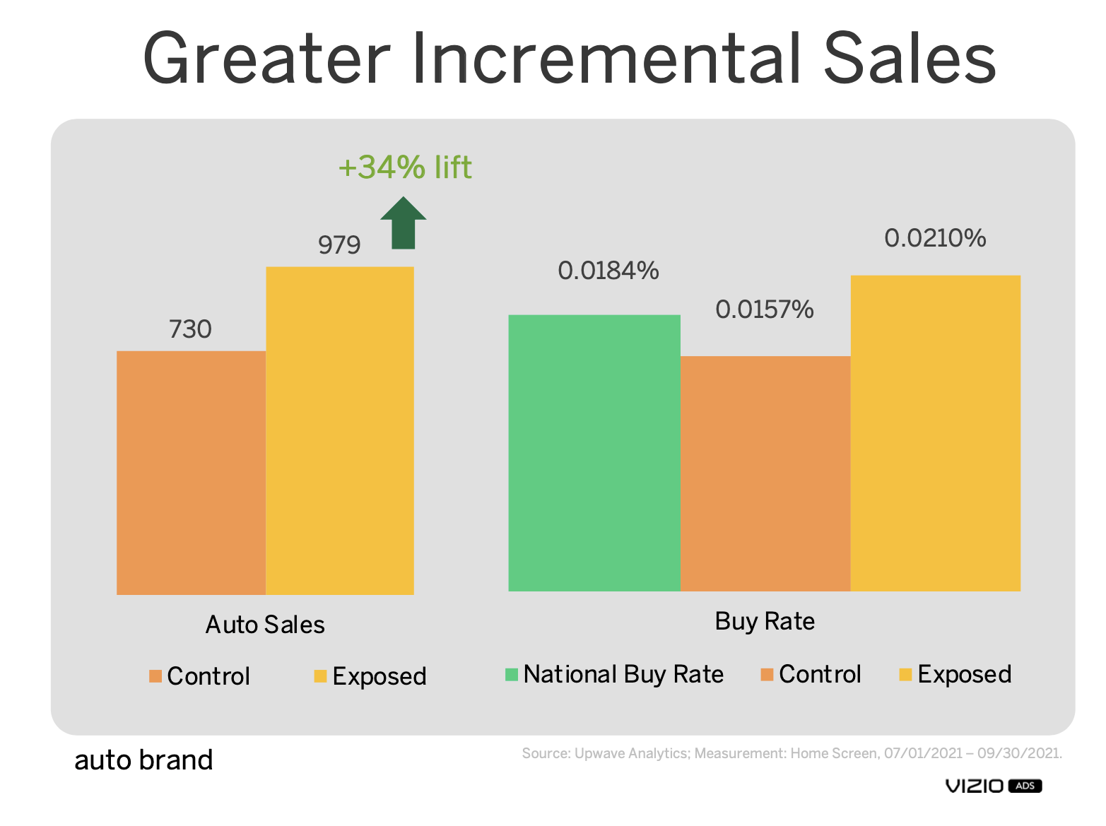 The study measured the impact of three separate activations across the VIZIO Home Screen: A pizza restaurant, an auto brand and an insurance company. While each brand had varying targets, measurement objectives and performance indicators, the study revealed that they all established success after implementing the high impact placement with VIZIO.
