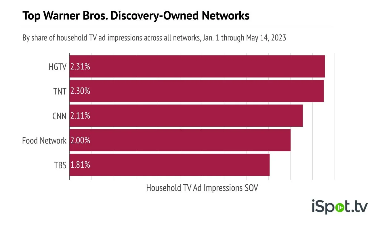 On the ad front, Warner Bros. Discovery-owned networks delivered 19.6% of the total household TV ad impressions for Jan. 1 - May 14, 2023, per iSpot.tv.