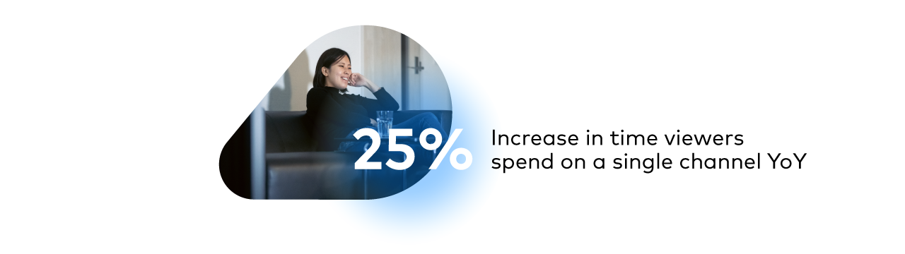 Over the past year, the average channel session duration — the amount of time viewers spend watching a single channel before switching — has grown 25%.