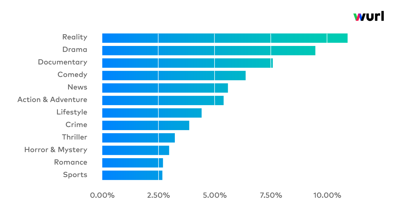 Reality, Drama, and Documentary dominate, while Lifestyle, Comedy, and News continue to grow. This breadth lets advertisers pair campaigns with both mass audiences and high-value niches.
